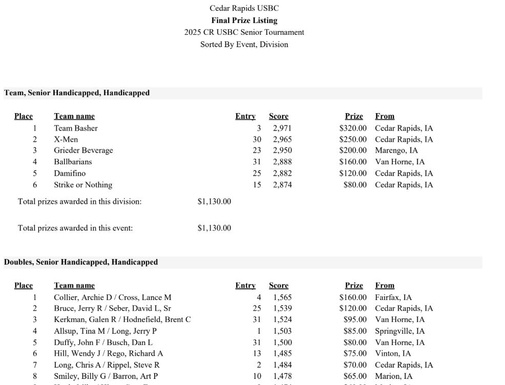 Singles, Doubles, and Team Event. Dates: 11/08, 11/09, 11/15, 11/16.